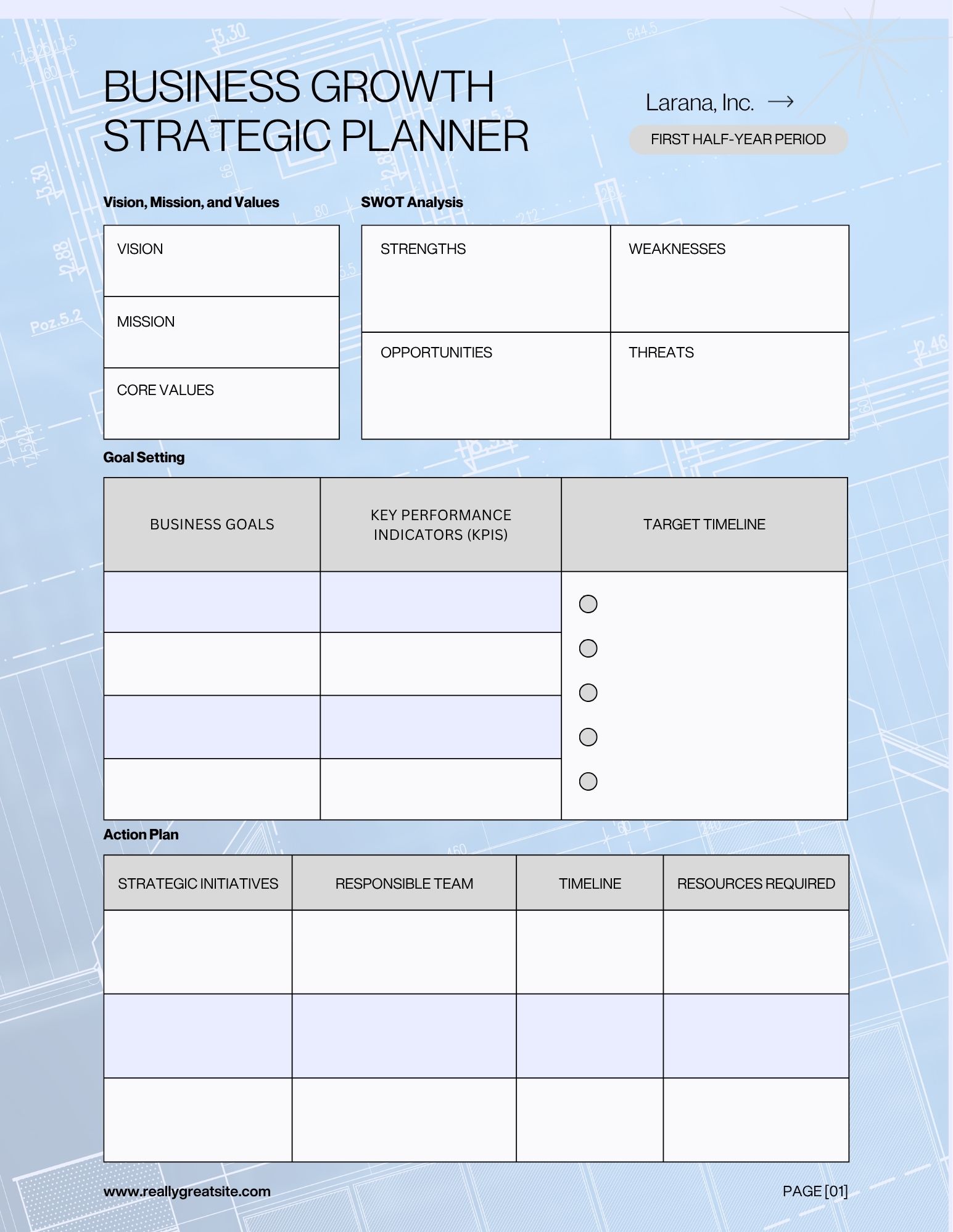 Define your company's core purpose, core values, and Mission. Know the strengths, weaknesses, opportunities, and threats of your business, your ideal customers and how to increase your customer base.