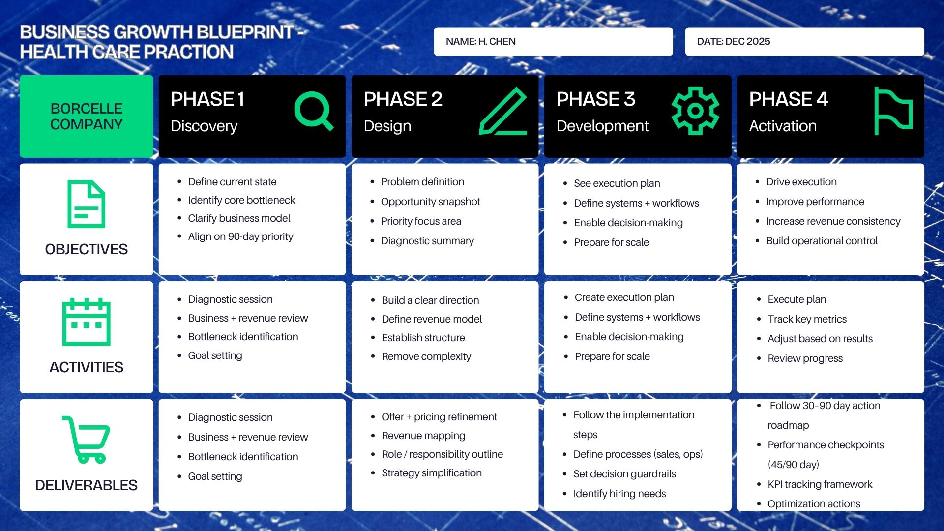 Goal Setting / Critical Number Identification / Strategic Pathway Creation all 2100% personalized to you and your business needs today and in the next 3-5 years.